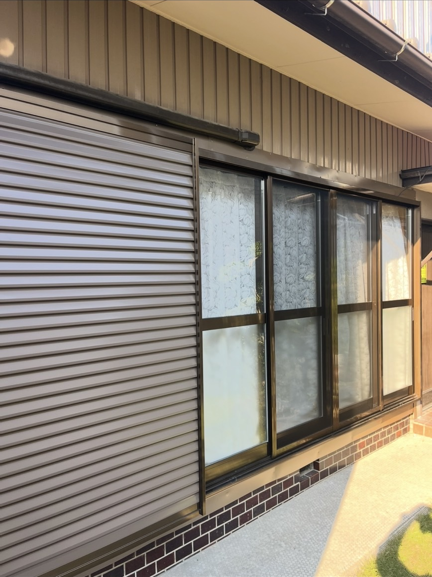 サッシ一括交換工事「マディオP」 2025/08/17 サッシ一括交換工事「マディオP」 玄関廻がブロンズ色のため、古くなったゴールド色のサッシもブロンズにして、統一感もでました。 また経年劣化により動きが悪くなっていたのも解消されました。