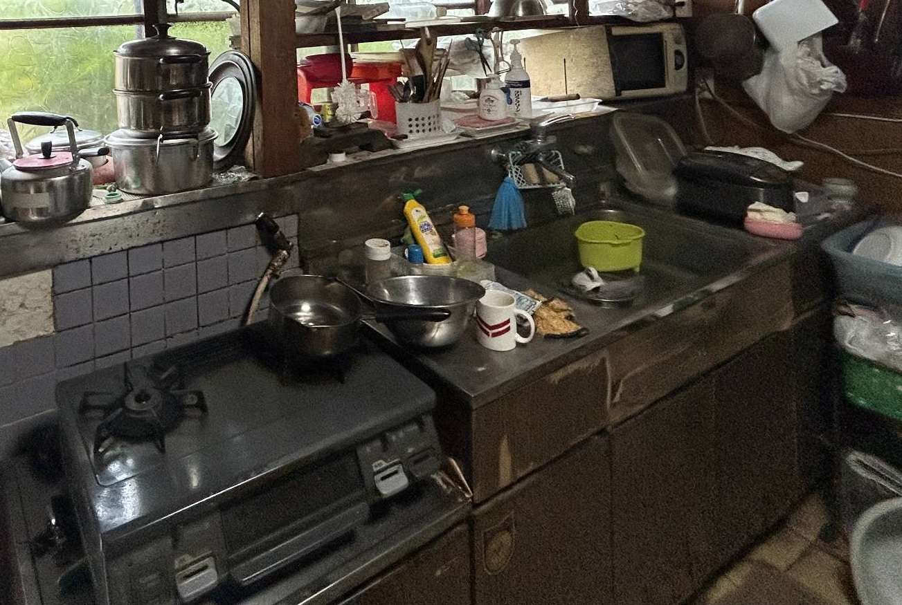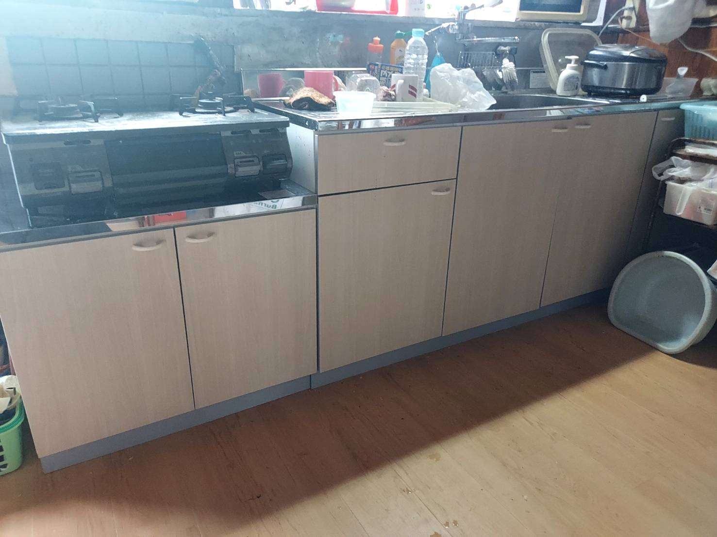 キッチン、フロアタイルの交換をして、暗く古い印象から明るく清潔感のある空間に生まれ変わりました。収納力もアップ。