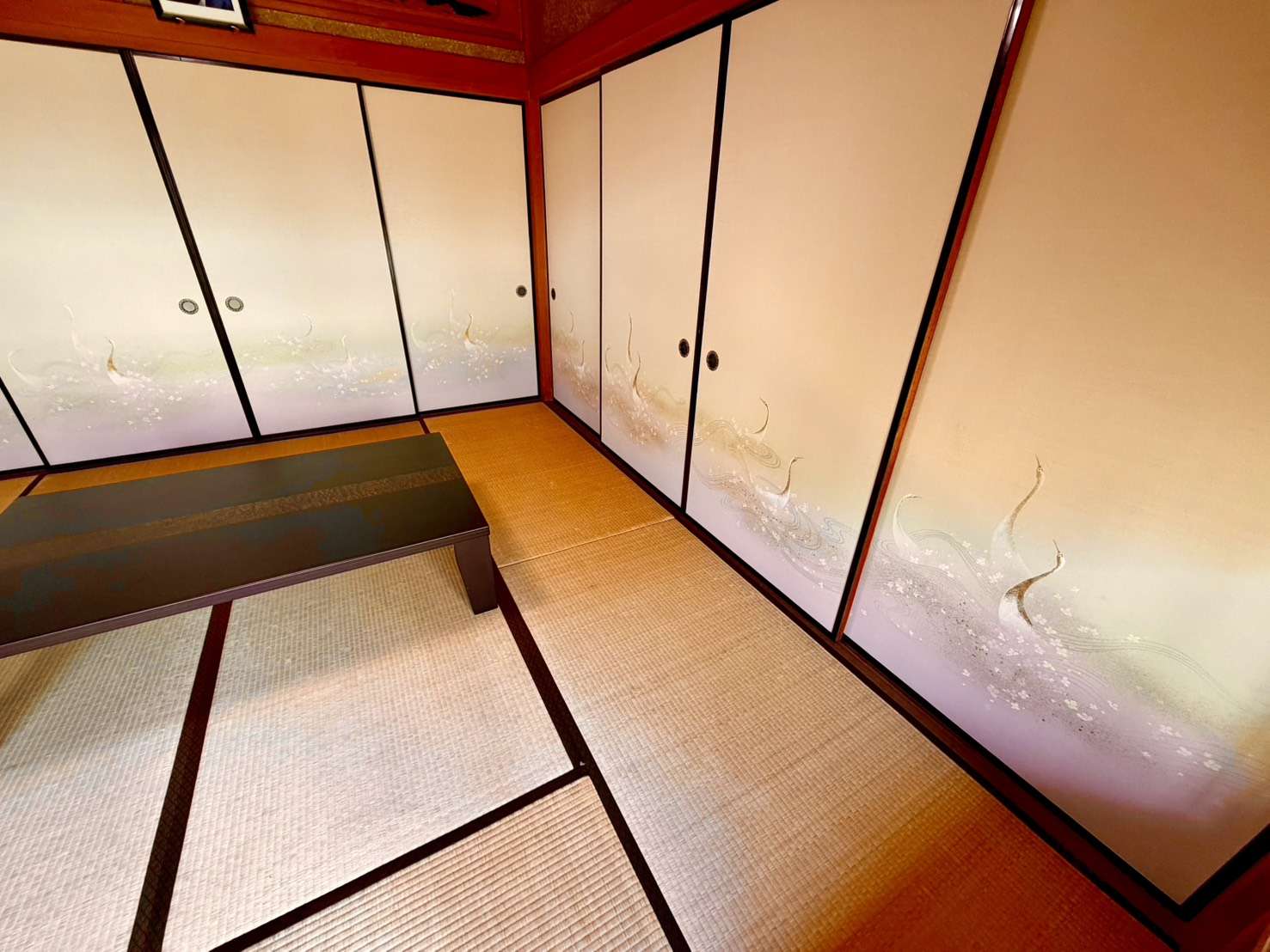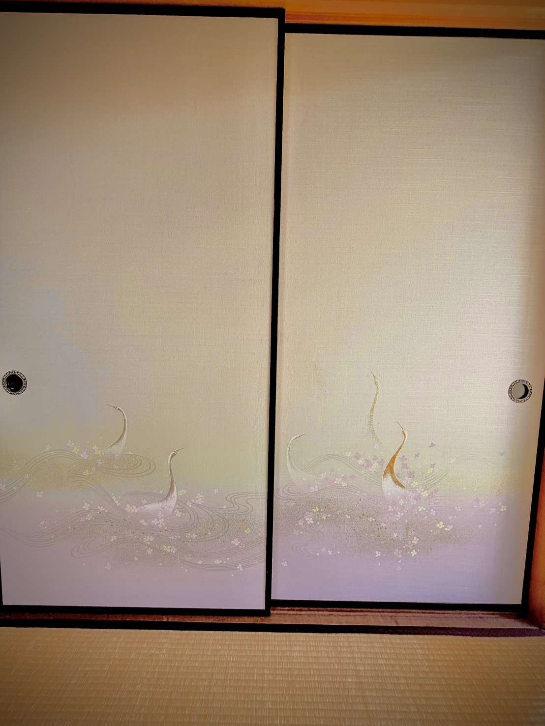 襖 漣No.91【優雅】 2026/04/29 襖 漣No.91【優雅】 鶴柄が映える、品格ある襖へ。 控えめな華やかさと高級感で、和室を上質な空間に仕上げました。 2枚組 親和金使用 寸法:97cm×185cm 3尺2寸×6尺1寸 柄丈寸法:78cm 使用生地:No.2306